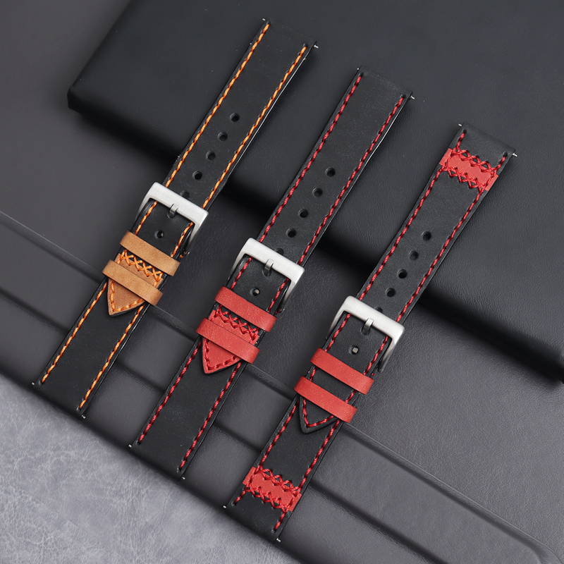 Dual-Color Design: A stylish two-tone/contrast color application on the strap tip and keepers (loops), creating a bold visual identity for any watch.
